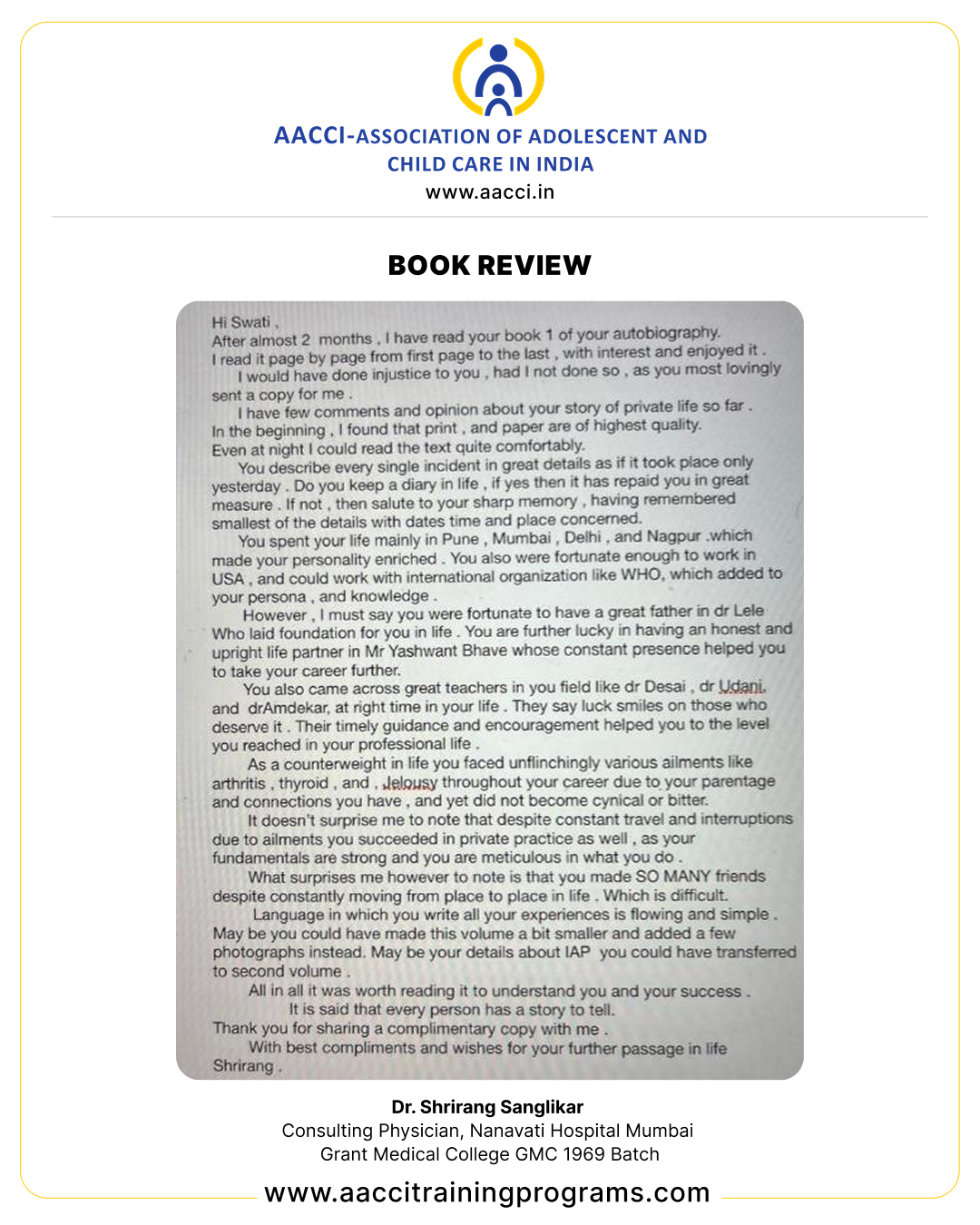 UNIQUE JOURNEY OF DR. SWATI Y BHAVE